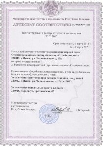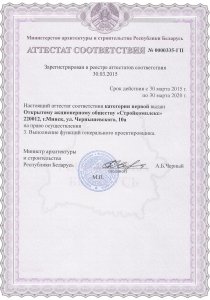 Аттестат соответствия: Выполнение функций генерального проектировщика.