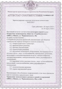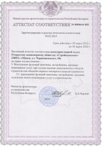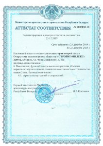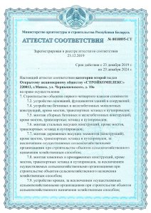 Аттестат соответствия: Строительство объектов первого-четвертого классов сложностиАттестат соответствия: Выполнение функции генподрядчика второй категории