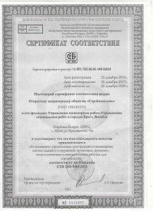 Сертификат ISO 9001: Строительство зданий и сооружений; ремонтные работы в строительстве.